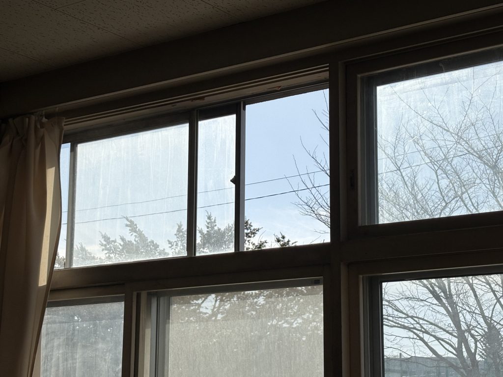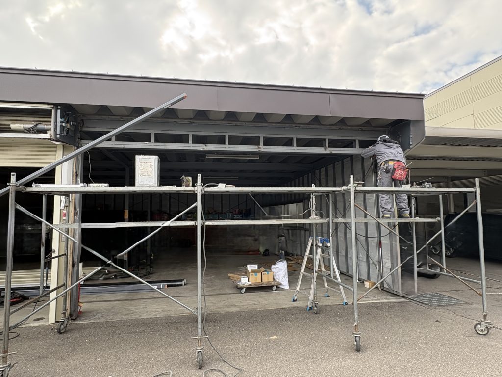 某施設の既存ガラスからアルミパネルへの交換工事です。